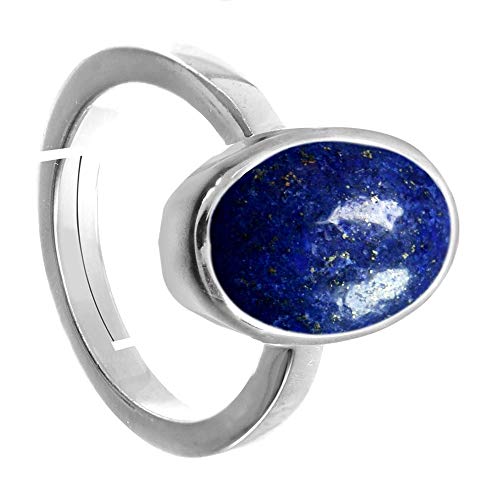 Jewelryonclick Anello regolabile argento naturale anello regolabile blu lapis-lazuli anello di pietra ovale forma cabochon tagliata in taglia 46.1 a 55.1 per uomo e donna