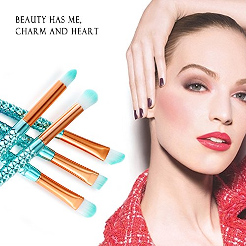 JewelryWe 10pcs Pennelli da Trucco Make-up Modello Sirena, Kit Multifunzione per il Trucco Professionale