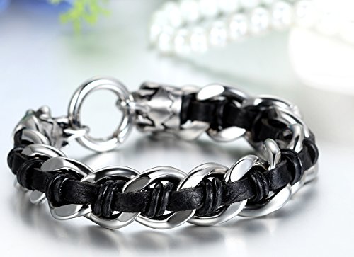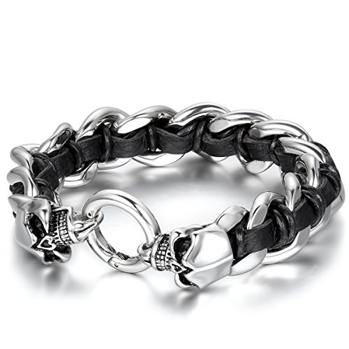 JewelryWe - Bracciale Punk Catena Moto con Teschio Cranio in Acciaio Inossidabile Stile Gotico Classico Regalo per Uomini