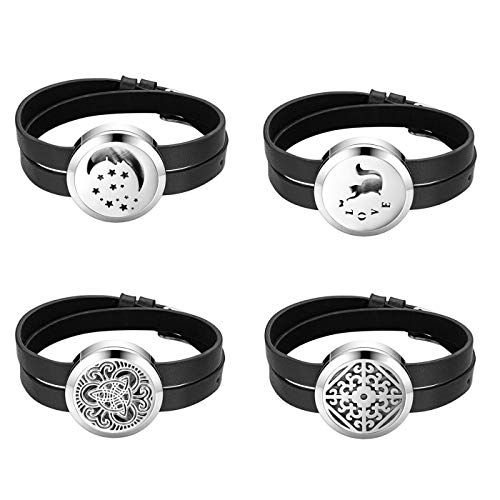 JewelryWe Bracciale da Uomo Donna Bracciale in Pelle, Aromaterapia Diffusore dell'Olio Essenziale,Multi-Disegni, Bracciale Regolabile
