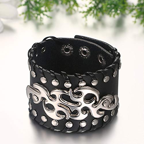 JewelryWe Bracciale Largo Punk in Pelle da Uomo Steampunk Stile Regalo Colore Nero