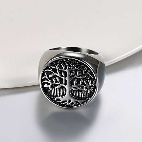 JewelryWe Gioielli Anello da Uomo in Acciaio Inossidabile, Albero della Vita, Colore Argento(con Borsa Regalo)