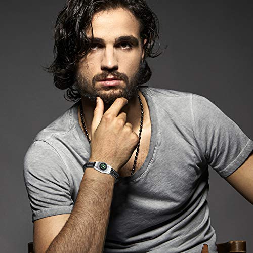 JewelryWe Outdoor Survival Bracciale con Bussola, Cinturina in Pelle,Braccialetto Magnetico, Regalo