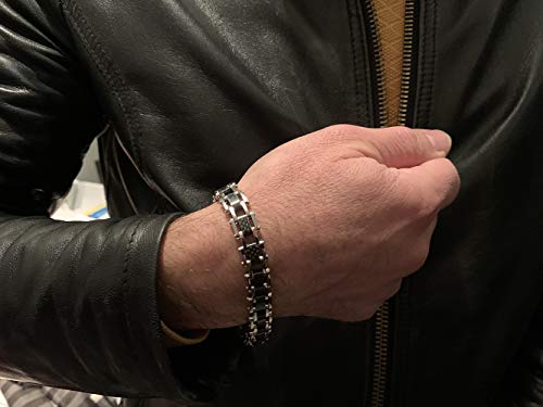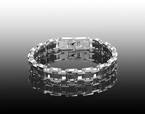 K JEWELS - White Fiber Chain, bracciale da uomo in acciaio con fibra di carbonio, lunghezza 22 cm, Meccanica Line