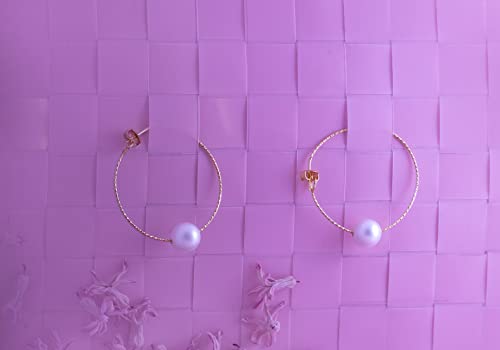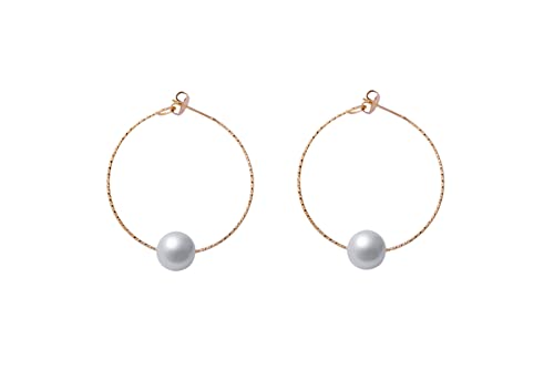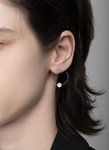Gems Jewerly Orecchini a Cerchio da Donna in Argento Sterling Placcato Oro con Perla D'Acqua Dolce Ø8.5x9.5mm