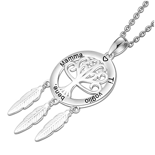 JEWUNIK Collana Donna Argento 925 Incisione Ciondolo Acchiappasogni Albero della Vita Mamma Nonna Regalo Originale