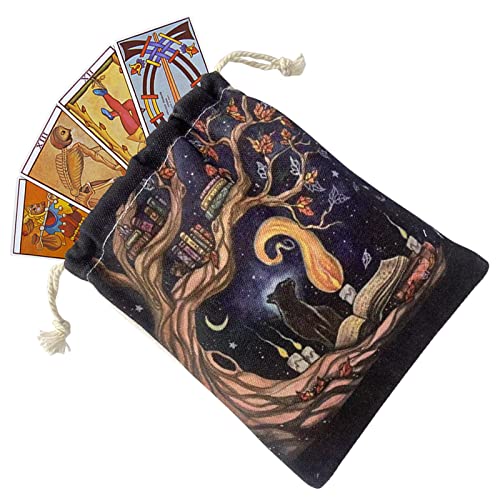 ◙Compatto e leggero: la borsa delle rune dei tarocchi è leggera e portatile. Contiene elementi come gatto, albero, libro, notte oscura, facili da catturare gli occhi della maggior parte delle persone.
