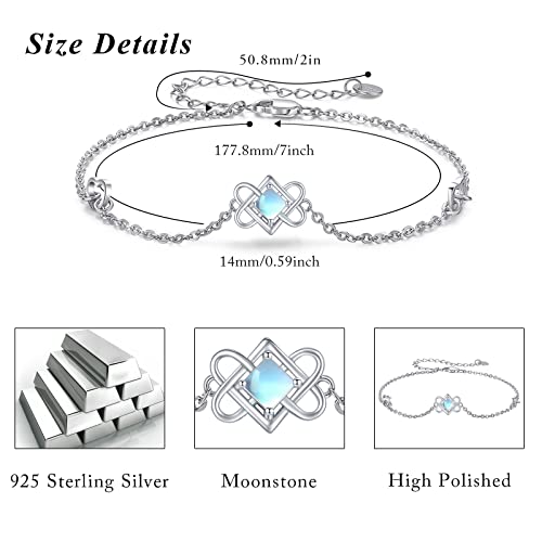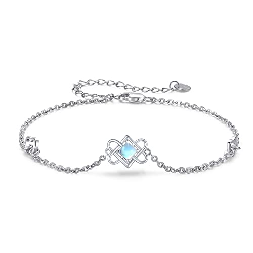 JFASHOP Bracciale con pietra di luna Bracciale con nodo celtico in argento sterling 925 Bracciale con pietra di luna arcobaleno regolabile Bracciale con nodo celtico per ragazze per bambini Fidanzata