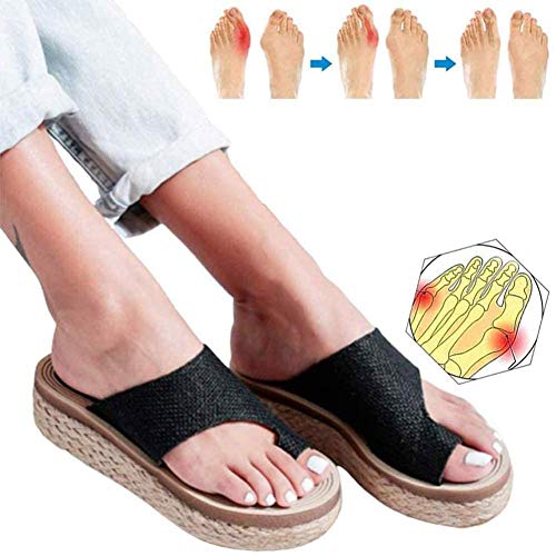 JFFFFWI Sandali con Plateau da Donna Sandali Comodi per Alluce valgo Sandali con correzione dell'osso dell'alluce Pantofole Infradito Casual Sandali con Tessuto Espadrillas, Nero, 38