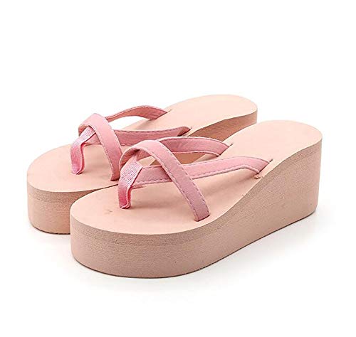 JFFFFWI Scarpe da Donna Infradito Sandali con Zeppa Pantofola da Spiaggia Antiscivolo Tacchi Alti con Suola Spessa, Rosa, 36