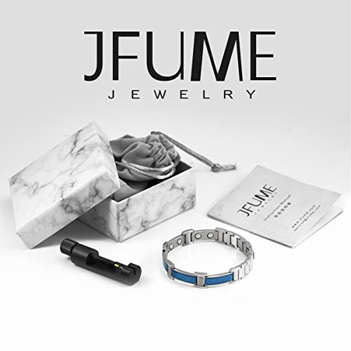 JFUME Braccialetto magnetico blu regalo per uomo e donna Gioielli in acciaio inossidabile con strumento di rimozione del collegamento regolabile da 8,3 ", argento e blu
