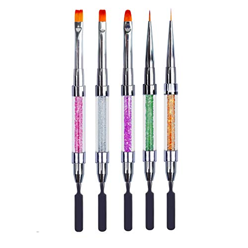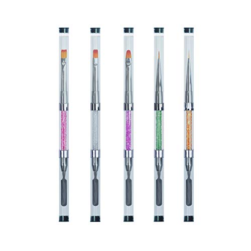 JFUNE 5PCS Pennelli per unghie Nail Art Design & Liner Set 2in1 Pennello per pittura per unghie e gel UV Solvente per smalto