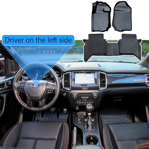 JHCHAN Pickup Tappetini per Ford Ranger 2012-2022 T6 T7 T8 Wildtrak Raptor Platinum Tremor Limited XLT XL - Set di tappetini per auto 3D impermeabili