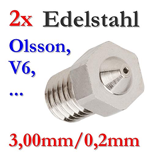 2 X E3D V5 V6 jhead ugello in acciaio inox 0,2 mm per 3,00 mm