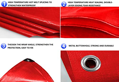 JHNEA Telone Resistente all'Acqua Anti UV Antistrappo con Occhielli, Telo Impermeabile Esterno, Protettivo Rosso con Occhielli, in PE Impermeabile, antistrappo,Red_2*5M(6 X 15ft)