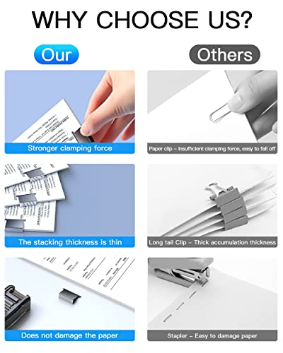 【Facile da riempire e rimuovere】 Le clip in acciaio inossidabile sono riutilizzabili, 50 graffette possono essere riciclate molte volte, sicure ed ecologiche, facili da smontare e riutilizzare, non graffiano o danneggiano la carta, garantiscono l'integrità e la bellezza della carta.