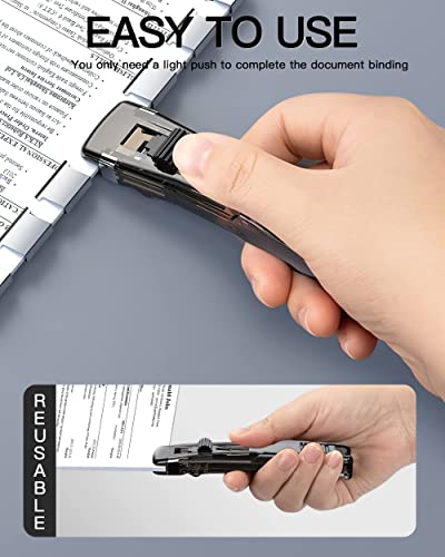 JHXIZO Cucitrice, New Mini Pinzatrice a Spinta Set con 50 Pezzi Graffette Riutilizzabili, Facile da Usare, Design Ergonomico con per Ufficio, Casa, Materiale Scolastico (Clip di colore nero)