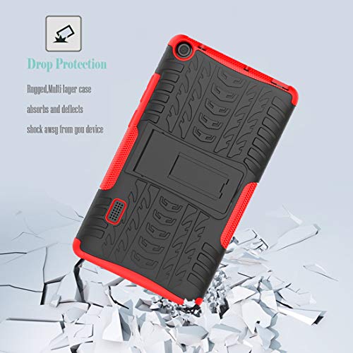 Jhxtech Huawei MediaPad T3 7 WiFi Case, Armor Style Hybrid PC + TPU Protective Case with Stand for Huawei MediaPad T3 WiFi 179mm 7.0 inch Tablet Cover Protection (Red)