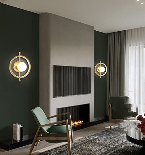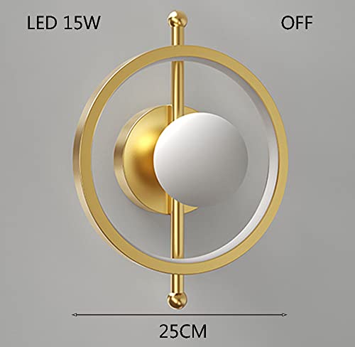 JHYPVII Moderno Interna Anello Lampada Da Parete con Bianca Sferico Camera Da Letto LED Dimmerabile Lampada a Muro Ø25CM 15W Metallo Alluminio Luce a Muro Acrilico Paralume Soggiorno Corridoio,D'oro
