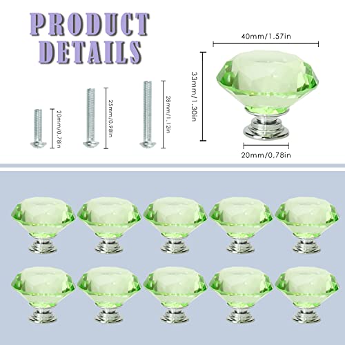 JIABOSE 10 pomelli da 40 mm in cristallo verde per armadietti, cassetti, armadi, decorazioni per la casa, con base argentata