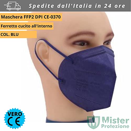 Jiada Mascherine FFP2 Colorate Con CE0370 confezione da 20 pezzi Blu con 2 elastici salvaorecchie in OMAGGIO