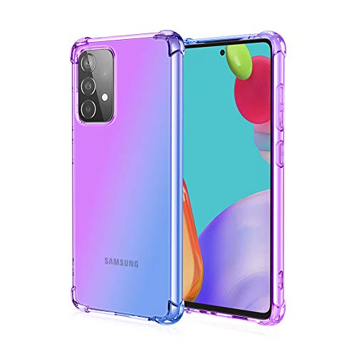 JIAFEI Cover Samsung Galaxy A52 Custodia Protettiva Case per Samsung Galaxy A52 in TPU Morbida Ultrasottile Antiurto ad Angoli Protezione per Fotocamera Schermo Gradienti Trasparenti Porpora/Blu
