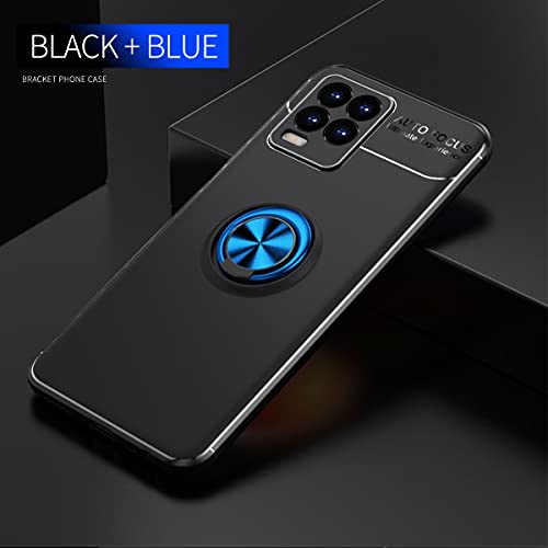 JIAFEI Custodia Adatto per Oppo Realme 8 4G / Realme 8 PRO, TPU Silicone Smartphone Case, con Metallo Anello Supporto 360 Grado Rotazione Design Protective Custodia Cover, Blu + Nero