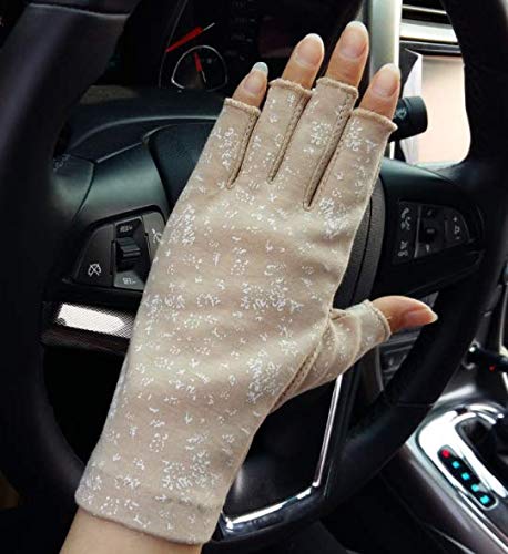 JIAHG Guanti estivi da donna, in cotone, a mezze dita, corti, antiscivolo, taglia unica, colore: cachi