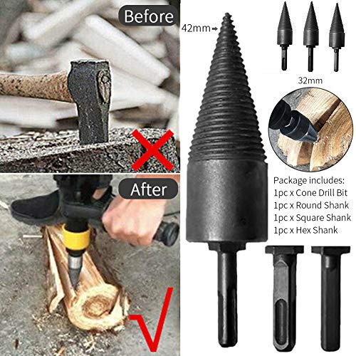 Jiakalamo 4 pezzi con 3 punte coniche per legna da ardere, 42 mm