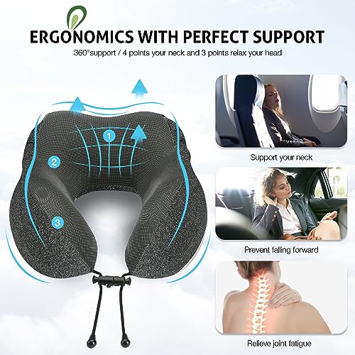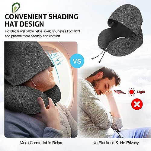 Jiancrate Cuscino da Viaggio Memory Foam, Cuscino Aereo Viaggio con Cappuccio, Comodo Cuscino Cervicale da Viaggio, Cuscino Collo Viaggio Portatile per Aereo, Auto, Treno, Casa, Ufficio