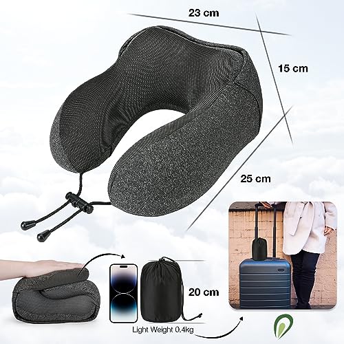 Leggero e Compatto: A soli 400 g e misurando 25x23x15 CM, il nostro cuscino viaggio collo è stato progettato per una portabilità e comfort superiori. È dotato di un comodo sacchetto portatile che consente al cuscino di comprimere fino a ½ della sua dimensione, rendendolo facile da piegare e da portare ovunque tu vada. Include anche tapp