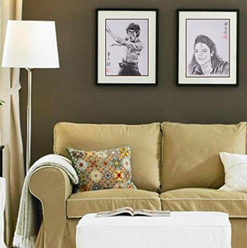 Jiangnanruyi Art Oridental Artwork Kungfu Bruce Lee senza cornice dipinta a mano cinese pennello inchiostro e lavare pittura ad acquerello disegno immagine decorazioni per Office soggiorno camera da letto, Carta, 17.7"×13.4"
