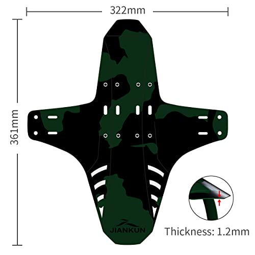 Design perfetto: questo parabordo è progettato nella forma di un aereo. La linea di pressione nella parte centrale lo rende più facile da piegare per adattarsi a diverse dimensioni di biciclette. Il design avvolgente nella parte anteriore rende il parafango più alla moda. Il motivo mimetico sulla superficie è anche molto attraente.