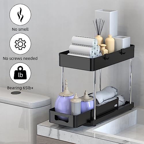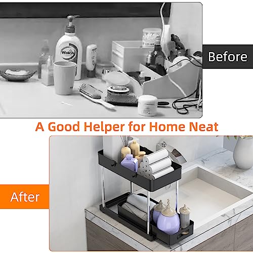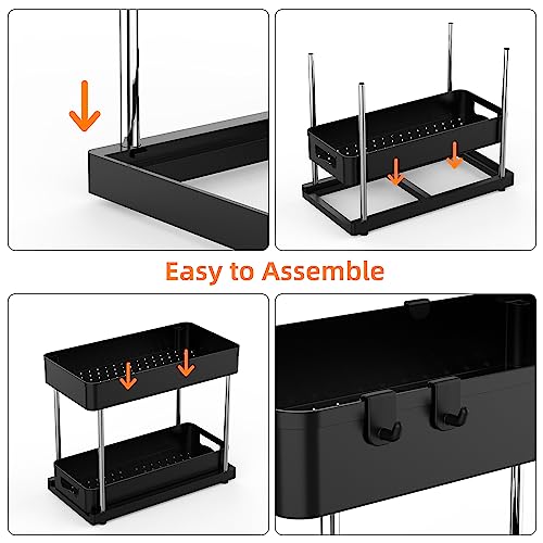Jianuo 2-Pacchi 2-Pezzo Organizer Cucina, Bagno, Mensola a Ripiani Salvaspazio, da sotto Lavello, Portaoggetti a 2 Livelli con 1 Cestello Scorrevole