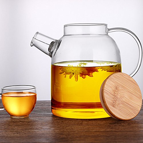 Jiaqi teiera in Vetro Resistente - con Coperchio in Bamboo brocca di Acqua Ideale per Frutta, Contenitore per Il tè e bollitore in Vetro 1600ml