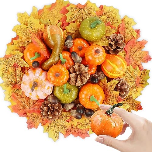 JIASHA 96 Kit per Decorazioni Autunnali, Artificiale Mini Zucche, Decorazioni Autunnali Zucche, Set di Zucche Artificiali con Pigne per Decorazioni Ringraziamento Festa Autunnali Casa (96)