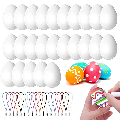 JIASHA Uova di Pasqua Decorate, 25 Pezzi Uova di Pasqua di Plastica Ornamenti di Uova di Pasqua Decorazione Pasquale, per Pittura di Artigianato Fai da Te di Decorazione e Regalo