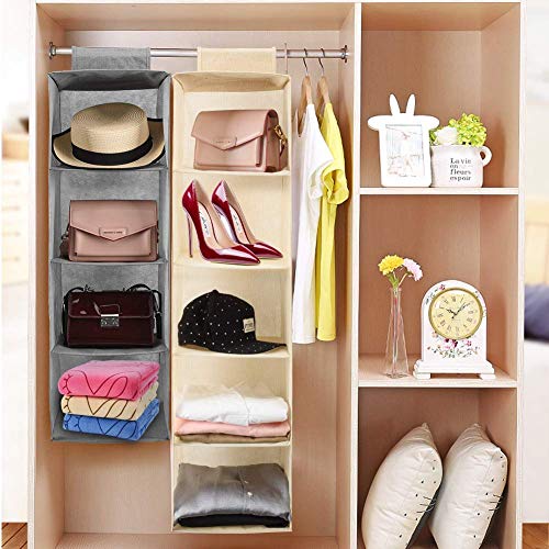 JiatuA Scaffale pensile con 4 Scomparti, Mensole Guardaroba da Appendere, Heavy Duty Appeso Armadio cassettiera Tasche per Maglioni, Scarpe, Accessori, Pieghevole Storage Box, Grigio