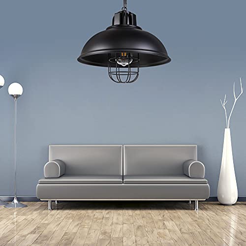 Questa è una lampada a sospensione in stile vintage, design paralume a gabbia nera, decorazione semplice e bella in casa.
