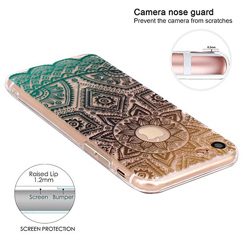 JIAXIUFEN Cover iPhone 7, TPU Gel Protettivo Skin Custodia Protettiva Shell Case Cover Per iPhone 7 (2016) - Gold Green Tribal Henna