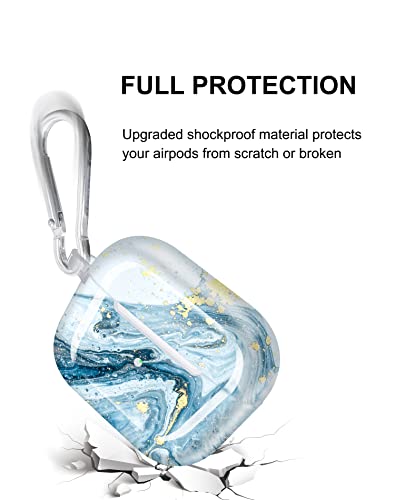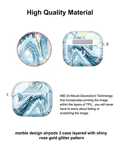 JIAXIUFEN Custodia per AirPods 3 Custodia Cover Sparkle Glitter Marmo Protezione Completa TPU Accessori per Donna Ragazza con Portachiavi Compatibile con Airpods 3 Generazione Blu