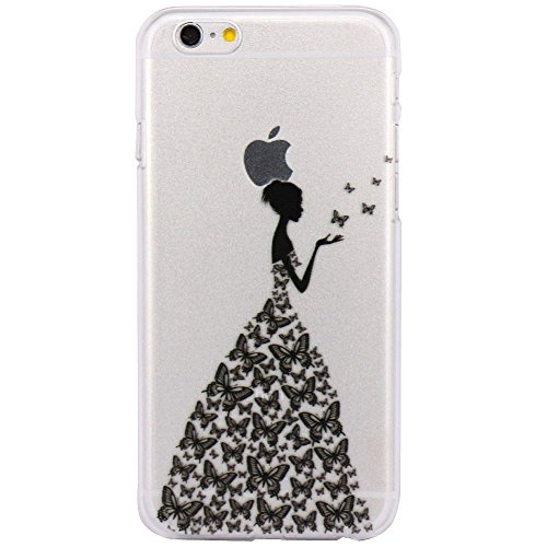 JIAXIUFEN Custodia Cover Case Ultra Slim Hard Plastica Custodia Protettiva Case Cover per Apple iPhone 6 6S (normale 4.7 pollici Schermo)-Henna Series Beautiful Butterfly Girl Black