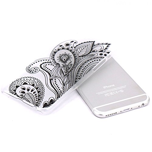 JIAXIUFEN Custodia Cover Case Ultra Slim Hard Plastica Custodia Protettiva Case Cover per Apple iPhone 6 6S (normale 4.7 pollici Schermo)-Henna Series Black Floral Paisley Flower Mandala
