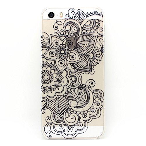 JIAXIUFEN Custodia Cover Case Ultra Slim Hard Plastica Custodia Protettiva Case Cover per Apple iPhone 5 5S - Henna Series Black Stapelia Floral Lace Flower