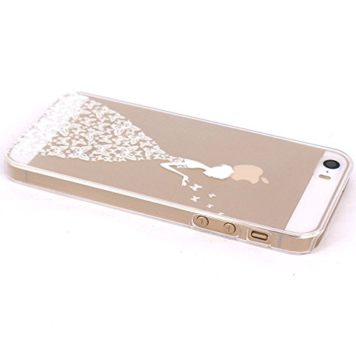JIAXIUFEN Custodia Cover Case Ultra Slim Hard Plastica Custodia Protettiva Case Cover per Apple iPhone 5 5S -Henna Beautiful Butterfly Girl