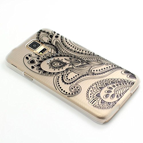 JIAXIUFEN Custodia Cover Case Ultra Slim Hard Plastica Custodia Protettiva Case Cover per Samsung Galaxy S5 Mini - Henna White Floral Paisley Flower Mandala Black