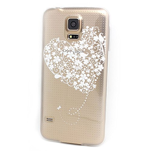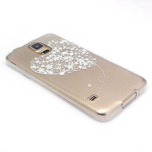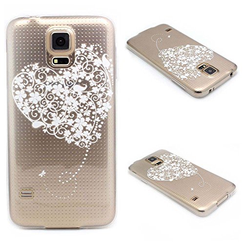 JIAXIUFEN Galaxy S5 Cover, TPU Gel Protettivo Skin Custodia Protettiva Shell Case Cover Per Samsung Galaxy S5 - Henna a Big White Love