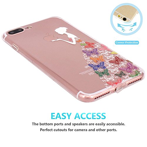 JIAXIUFEN iPhone 7 plus Cover, TPU Gel Protettivo Skin Custodia Protettiva Shell Case Cover Per iPhone 7 plus (2016) - White Colorful Apple Butterfly Girl
