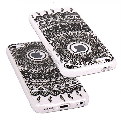 JIAXIUFEN iPhone 5C Cover, TPU Gel Silicone Protettivo Skin Custodia Protettiva Shell Case Cover Per Apple iPhone 5C - Black Tribal Mandala