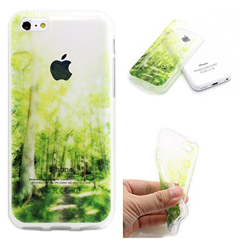 JIAXIUFEN Iphone 5c Case, Forest Painting Clear Bumper TPU Gel Silicone Protettivo Skin Custodia Protettiva Shell Case Cover Per Apple iPhone 5c